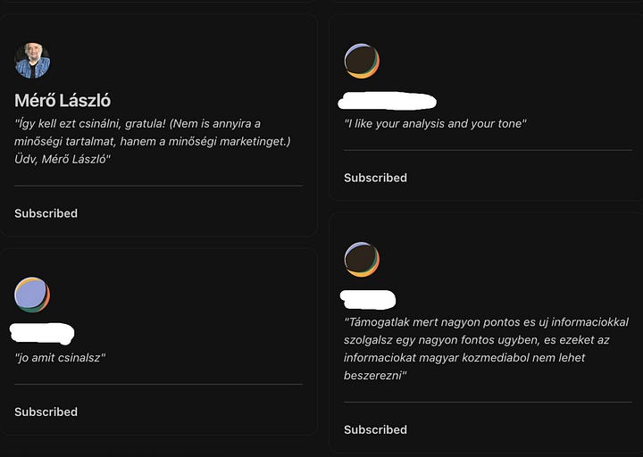 Az érdekesség kedvéért mellékelem a magyarországi legsikeresebb Substack-oldalak listáját is: