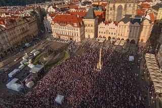 Prága belvárosában tartottak demonstrációt az influenszerek Csehország nyugati orientációjának megőrzése mellett